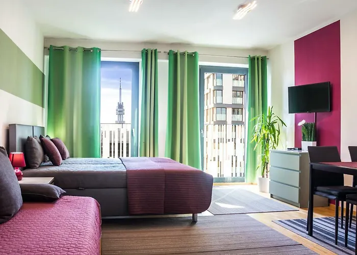 Beliggende i Prague 03 område i Prag, tilbyder Prague In Residential Tower - Parking ferielejlighed fri WiFi på alle værelser. Dette sted har gratis parkering og en have.
